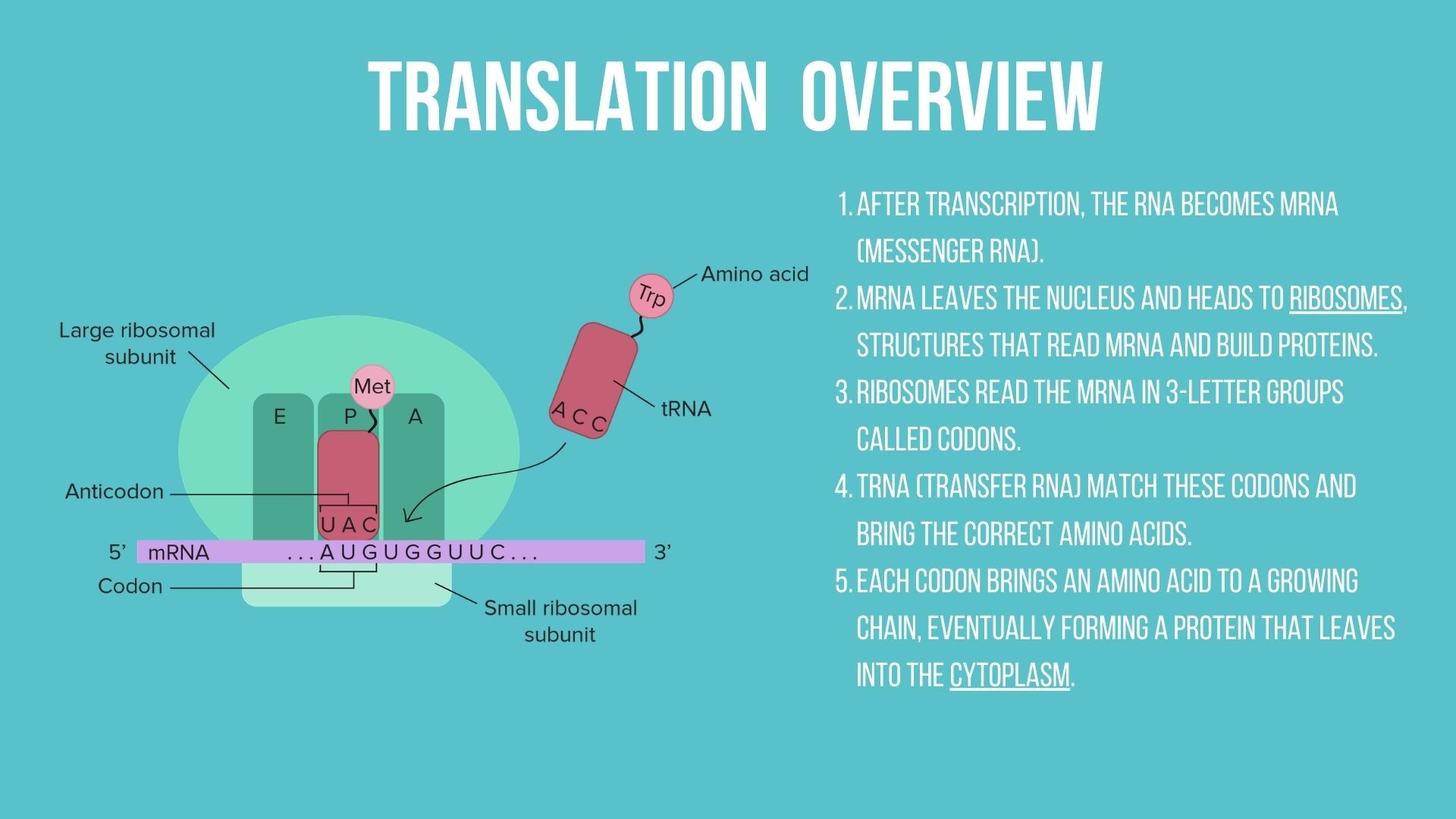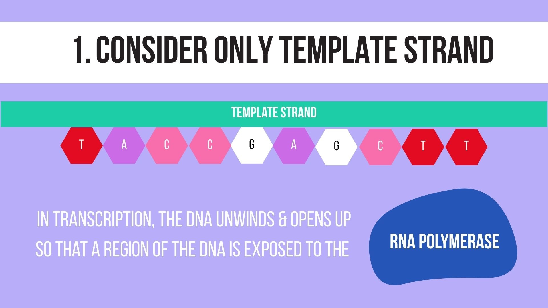 Translation: For this portion, have them look at one single strand of the DNA and have them go through and translate it