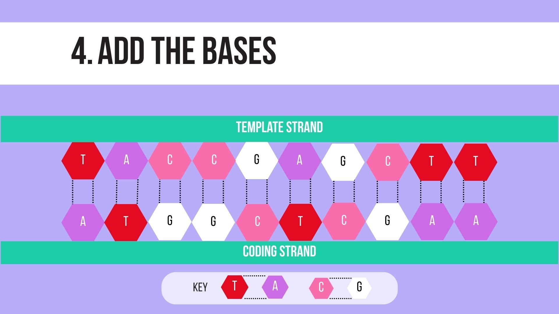 Have them follow along and pair A with U, C with G, G with C, T with A